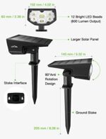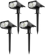 LITOM 12 LEDs Solar Landscape Spotlights, IP67 Waterproof Solar Powered Wall Lights 2-in-1 Wireless Outdoor Solar Landscaping Lights for Yard Garden Driveway Porch Walkway Pool Patio 4 Pack Cold White