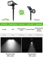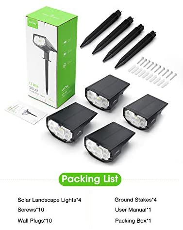 Home Sports & Outdoors LITOM 12 LEDs Solar Landscape Spotlights, IP67 Waterproof Solar Powered Wall Lights 2-in-1 Wireless Outdoor Solar Landscaping Lights for Yard Garden Driveway Porch Walkway Pool Patio 4 Pack Cold White